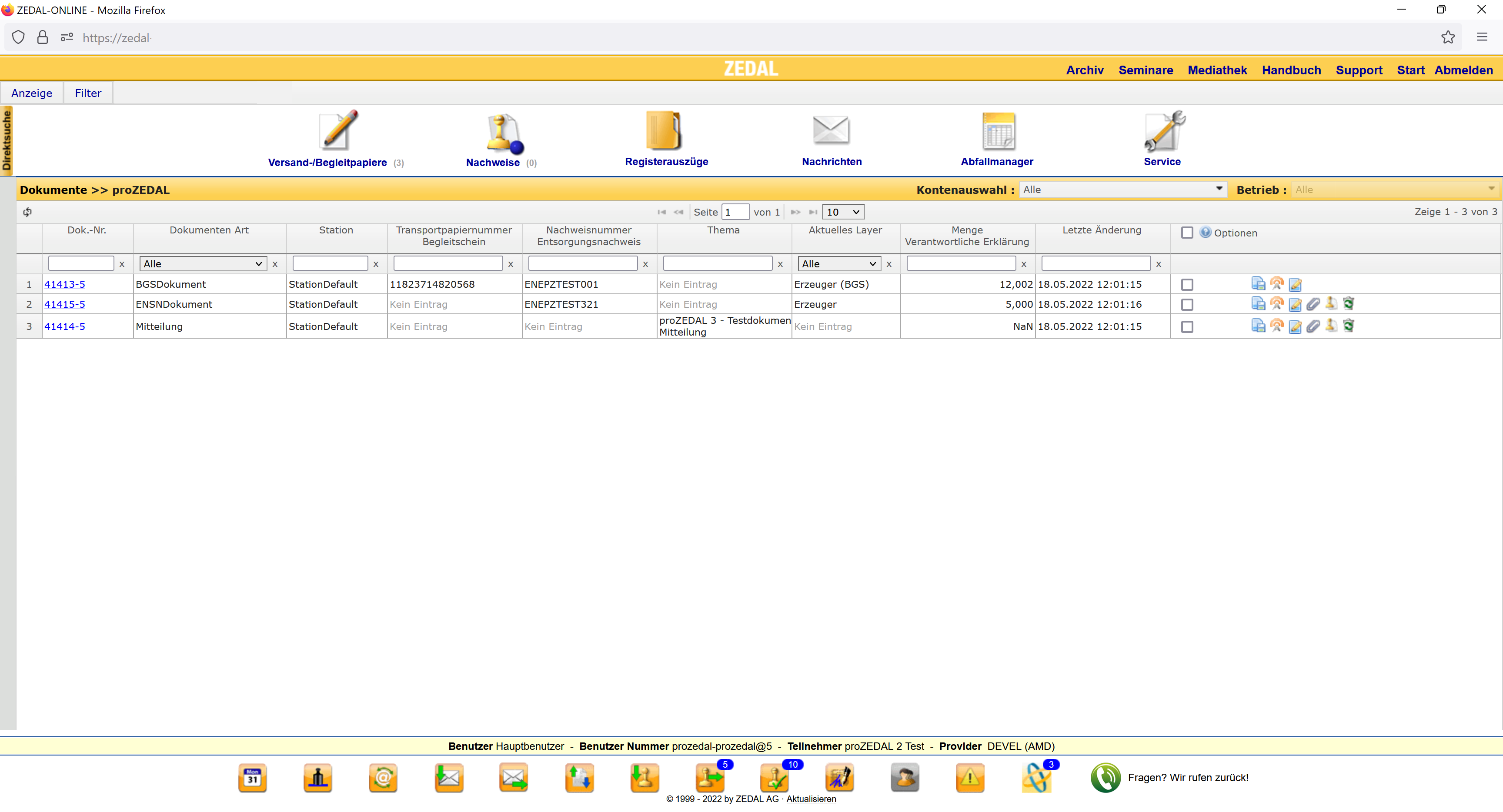 Er besteht aus einer ZEDAL-Dokumentübersicht. Es stehen die gewohnten Funktionen wie Filter, Anzeigekonfiguration, Excel-Export etc. zur Verfügung. Aus der Übersicht heraus können die Dokumente in ZEDAL Forms geöffnet und dort signiert werden. Die bisher aus dem Client bekannten Funktionen stehen dabei in der Optionsspalte zur Verfügung.
